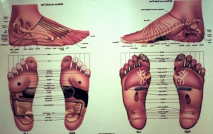 The feet are divided into zones vertically and horizontally and follow the energy flow and meridians used by the Chinese.